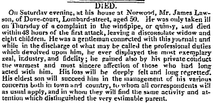 1817-Times Obituary of James Lawson – 8 December 1817 p.3 col.e
