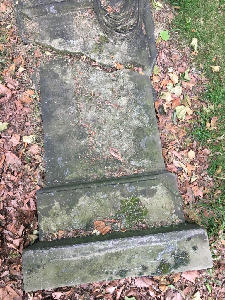 I visited Key Hill Cemetery for the first time in June 2017, having discovered just a few months earlier that this was my great great grandfather’s final resting place. Finding the plot proved to be an emotional event, but the actual moment of discovery was tinged with the disappointment of realising that the stone itself was in a terrible state. It had fallen and was lying on its back in pieces. Much of the text is illegible, the face of the stone having crumbled away many years ago.