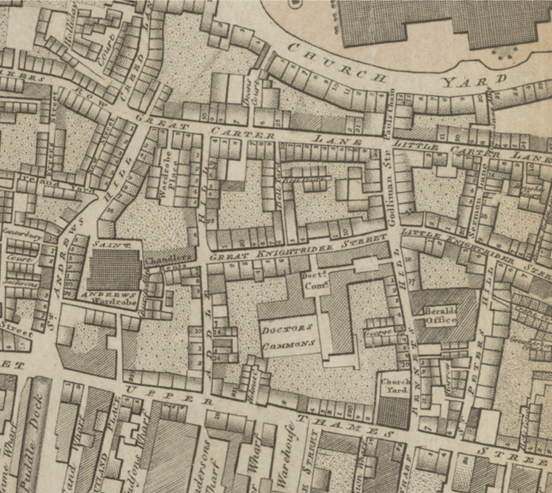 Walter Thornbury, ‘Baynard’s Castle and Doctors’ Commons’, in Old and New London: Volume 1 (London, 1878), pp. 281-293. British History Online http://www.british-history.ac.uk/old-new-london/vol1/pp281-293 [accessed 30 July 2022].