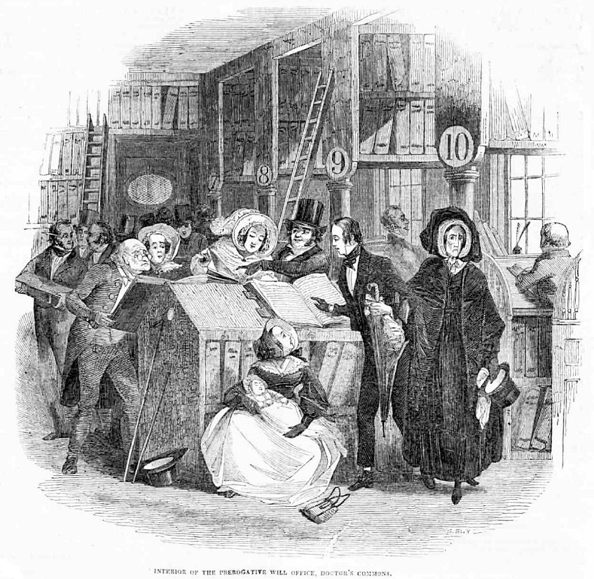 As I was sorting out the answers to the quiz, and making sure that I’d got all the facts right, I realised that there was one detail that I wasn’t at all sure about. I knew that the 1857 Court of Probate Act had led to the establishment of the civil probate system in 1858 and I knew that the Probate Search Room had ‘always’ been at Somerset House. But did ‘always’ mean that it was there from 1858? I needed to find out and my research led me to the discovery of a fascinating article published in the Daily News on 21 October 1874, comprising a blow-by-blow account of the relocation of ‘waggon-loads of wills’ from Doctors’ Commons, the ancient establishment in Knightrider Street, close to St Paul’s Cathedral, to the new (partly) purpose-built facility at Somerset House. The article also includes a brief and colourful history of Doctors’ Commons, an institution described by Charles Dickens in his semi-autobiographical novel, David Copperfield, as a ‘pernicious absurdity’. For people like me, with an (admittedly fairly niche) interest in the ‘history of family history’, the article is a precious treasure. So here it is, in its entirety…
