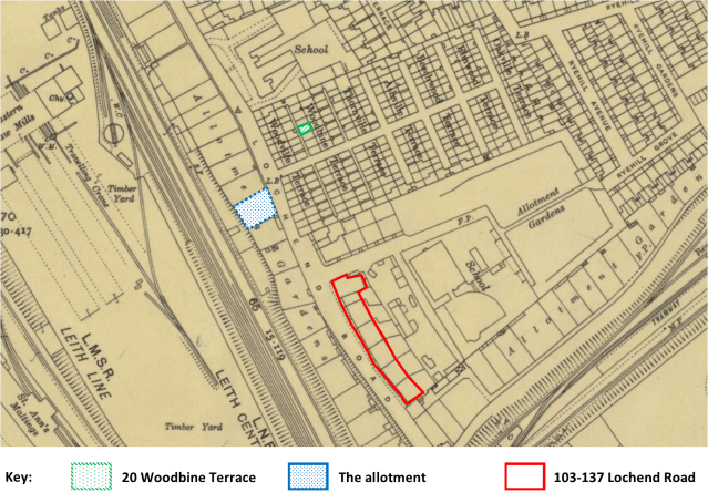 The final piece in the jigsaw came when I noticed that both Ina (in 1931) and William (in 1933) had given their address as 20 Woodbine Terrace, Leith. The Hope family, it turns out, had lived just a minute’s walk from the allotments in Lochend Road.