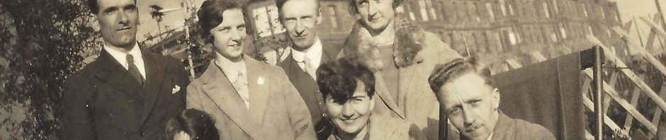 I’d examined each of the photos featuring our bohemian friend for clues and there was only one that seemed at all likely to produce any useful diagnostic results. It’s one of my favourite family photos although it only features one family member – my grandma herself. Maggie is at the centre of the group, here seen sporting an Eton Crop-style haircut which must have tested her mother’s patience to the extreme. Three more of the subjects are known to me; Ina (of course) and Mary are both in the group, second and fourth from the left in the back row respectively. Duncan McKechnie is there at the back on the left, in a classic Duncan McKechnie pose; shoulders back, head up, staring at something unknown off to the right, hair blowing in the wind, with a hat, apparently hanging in the air above his left shoulder. In fact, on closer inspection, the flying hat is suspended on the top of a garden trellis and when we explore the rest of the image, we can quickly see that the photo was taken in a garden or an allotment.